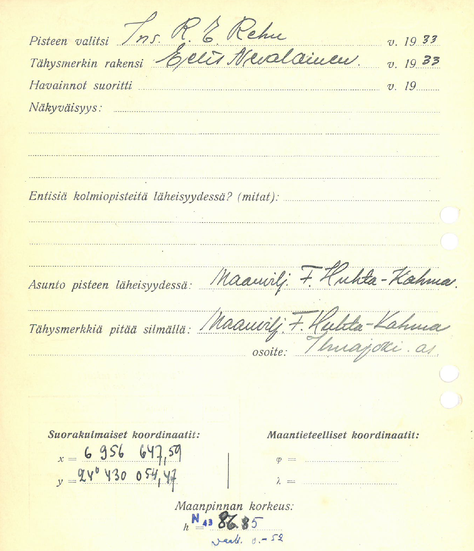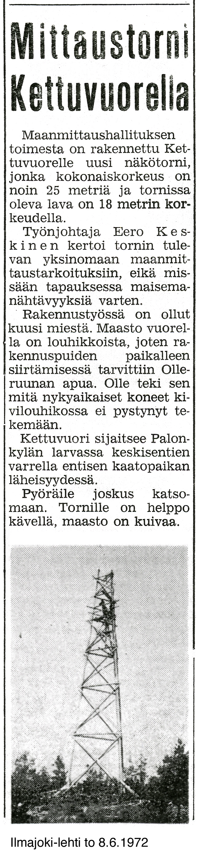 Kettuvuorelle tehtiin ensimmäinen torni jo vuonna 1933, Maanmittauslaitoksen toimesta.