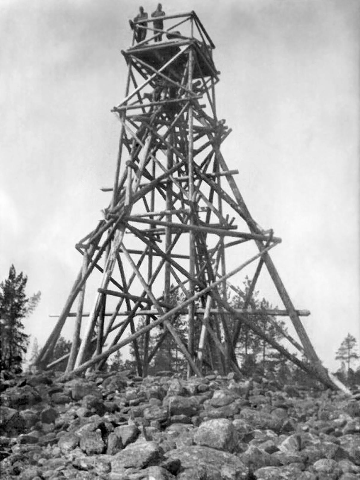 Varsinainen kolmiotorni rakennettiin seuraavana kesänä 14 - 21.6.1930, työnjohtajana Vilho Kärkkäinen Geodeettiselta laitokselta, ja apuna oli 10 sotamiestä.