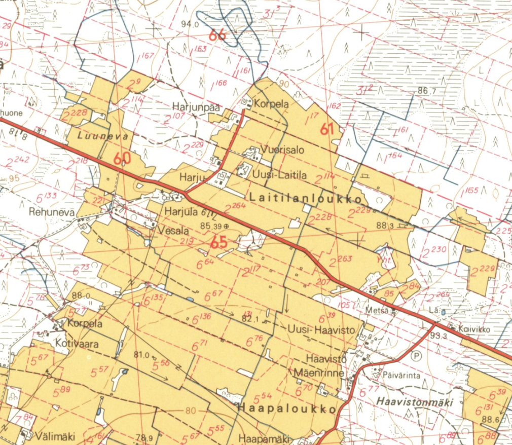 Läntinen puoli saatiin hieman myöhemmin, vasta 1970, jolloin koko Ilmajoen peruskartat oli käytettävissä.